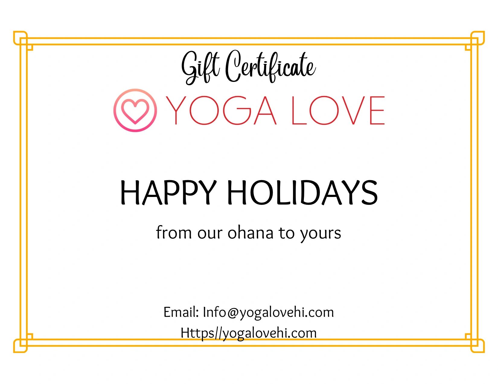 Share the love of yoga by giving a Yoga Love Hawaii gift card. Our gift cards can be used towards packages. Perfect for any yogi in your life.